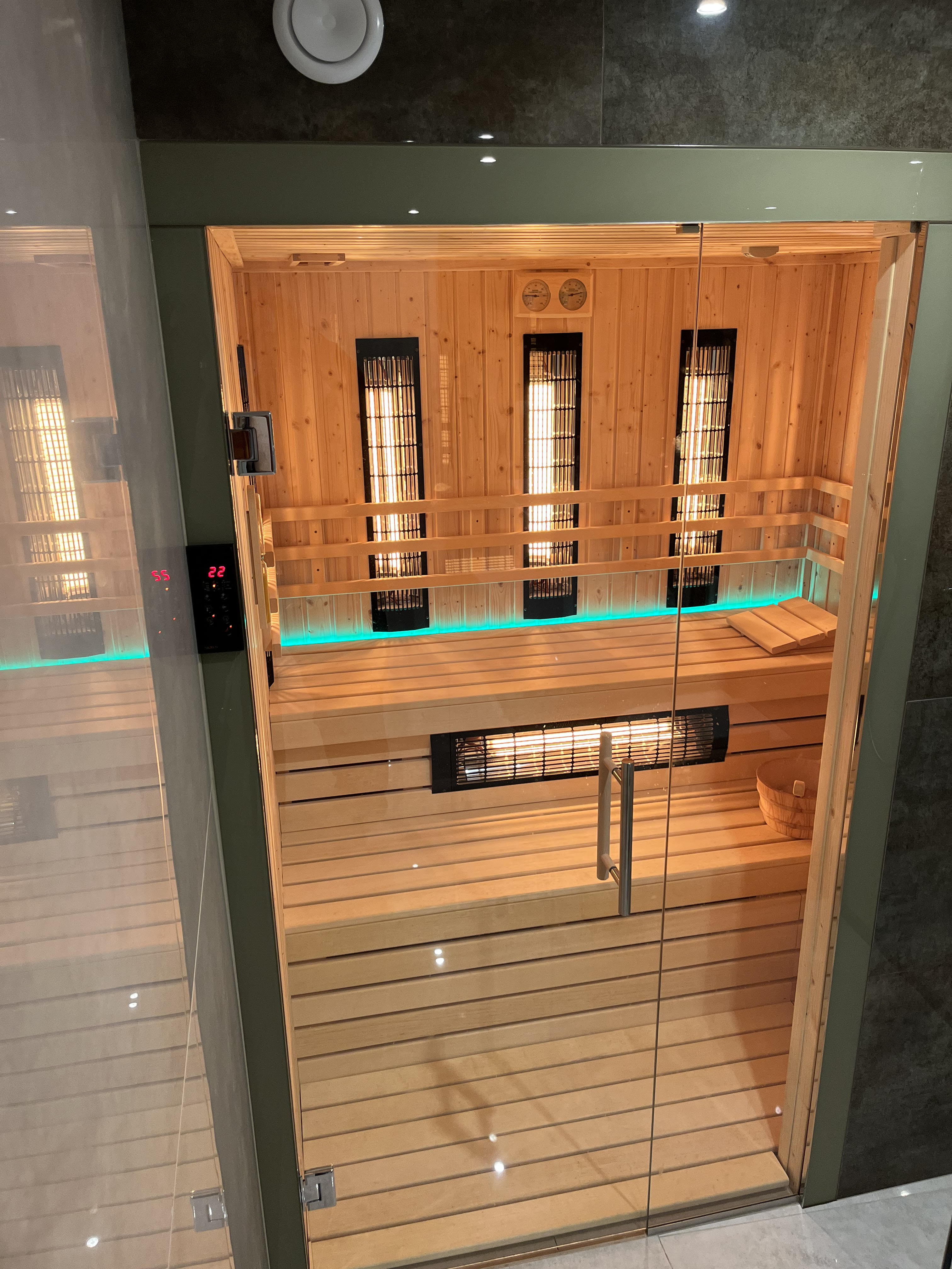 sauny producent, producent saun, sauna nowoczesna, sauna Infrared z przeszklonym frontem
